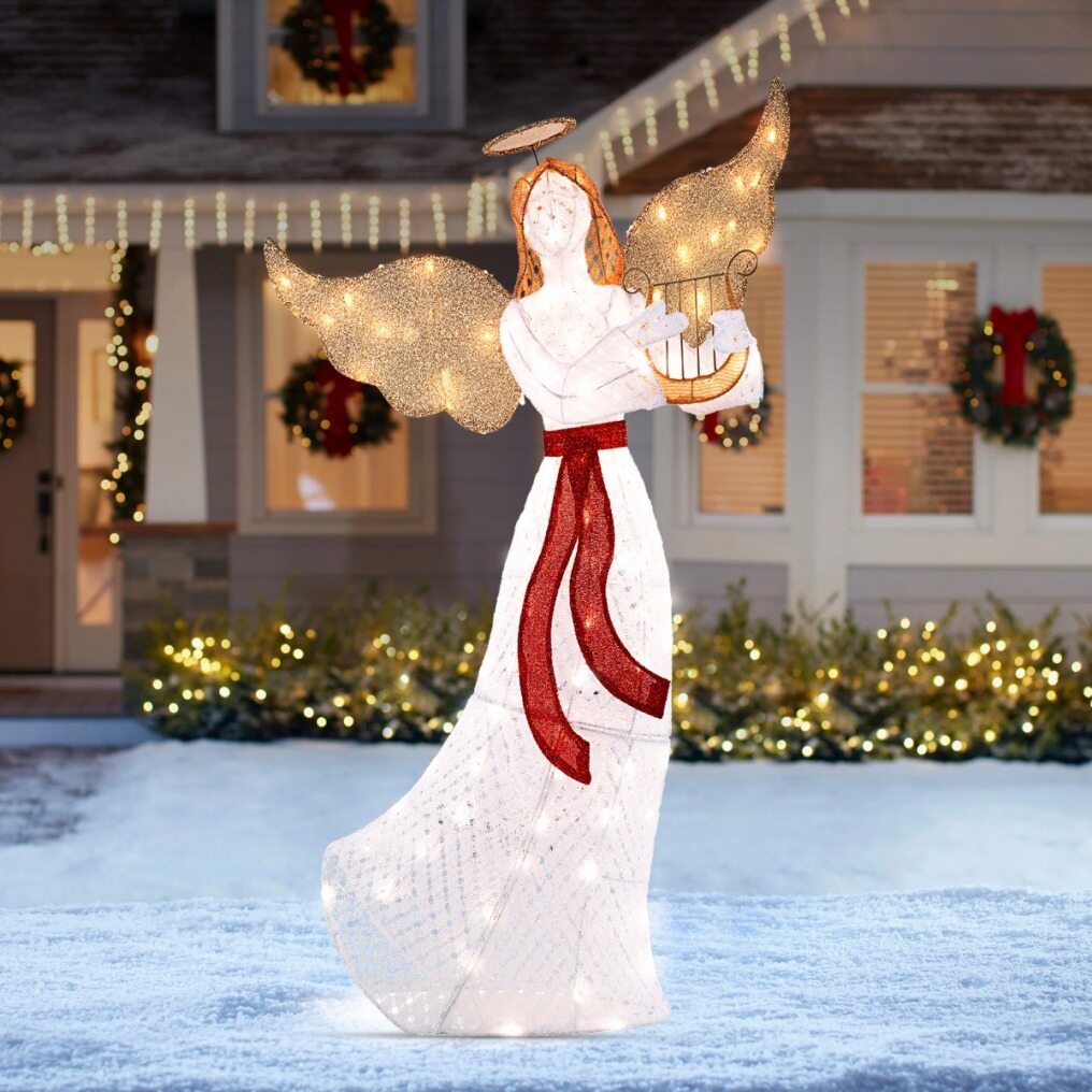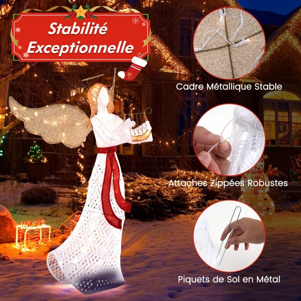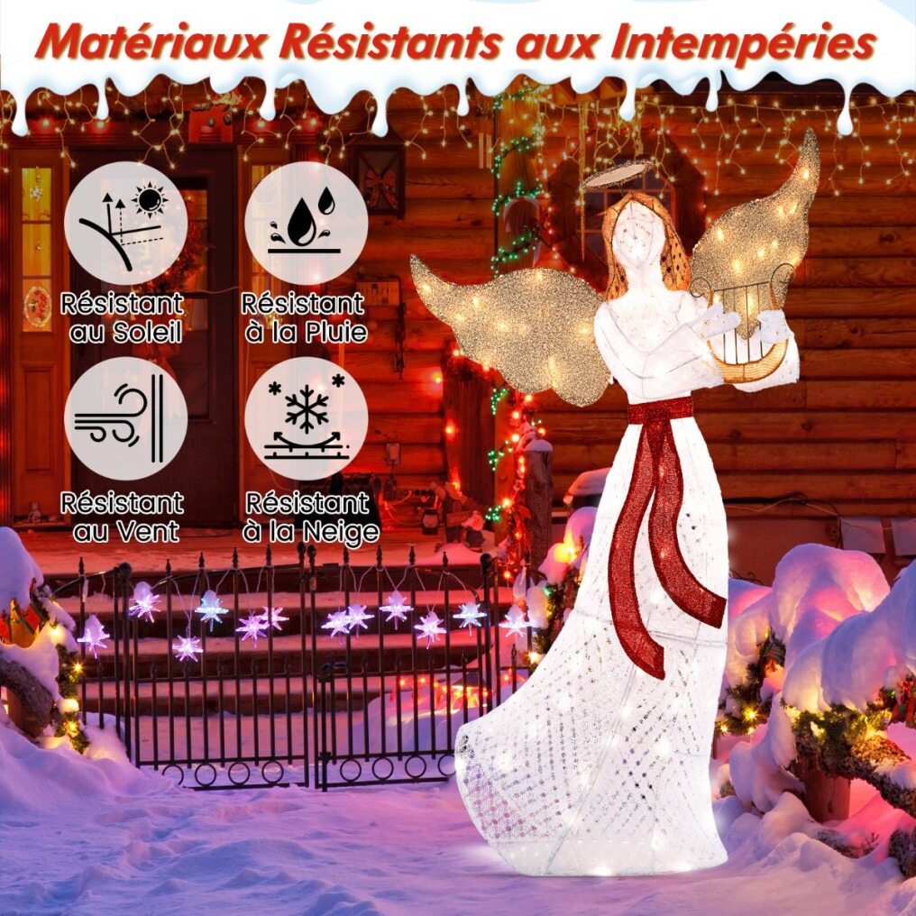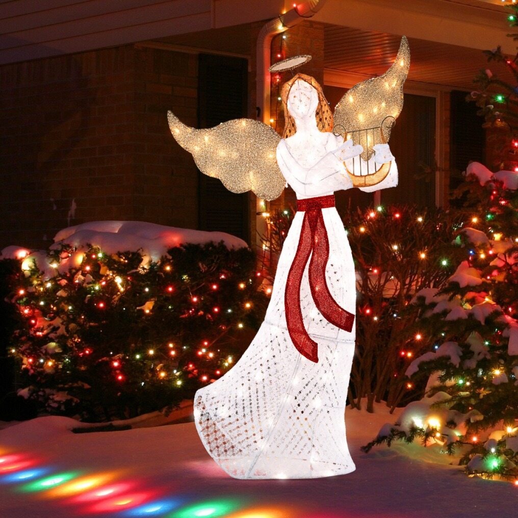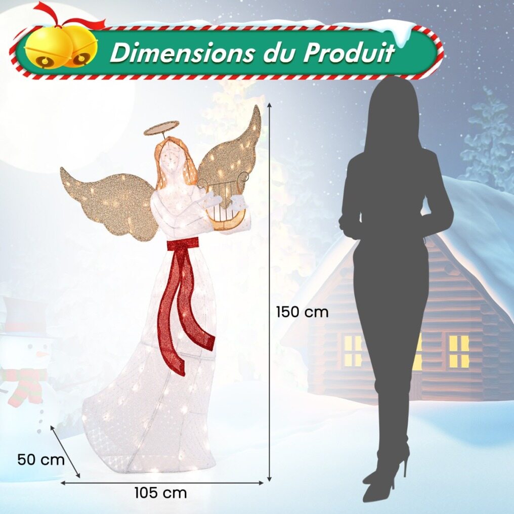 【Ideal Christmas Decoration】Standing at 150cm tall, the pre-lit angel features a halo, wings, harp and sash that enrich your landscape and create a festive atmosphere. As such, this angel serves as a divine centerpiece for your Christmas decorations.