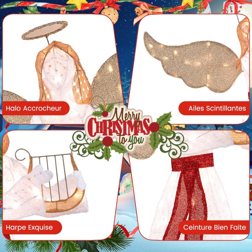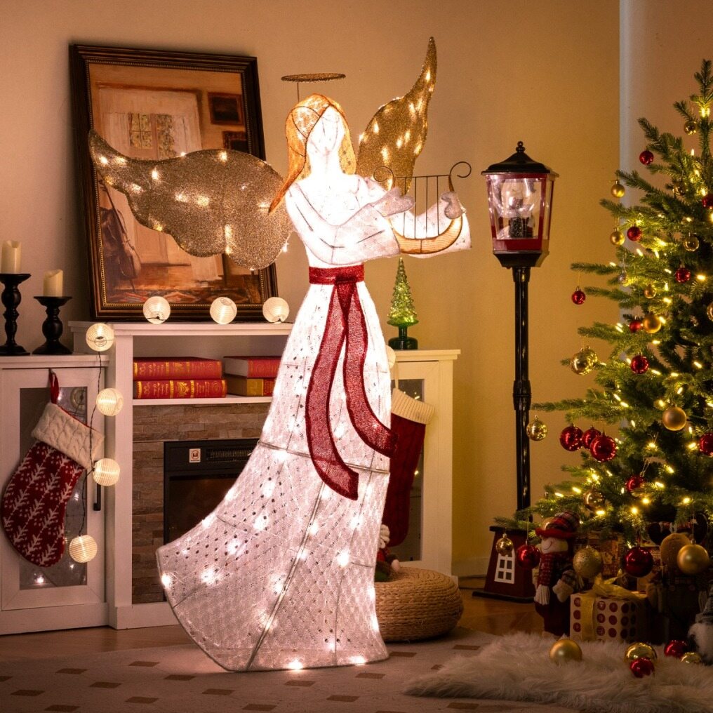 【Light Up Your Christmas】Decorated with 120 LED lights, this lighted angel adds a touch of sparkle to your Christmas decoration. Cool-to-the-touch and energy-efficient LED lights ensure a safe and enjoyable display.