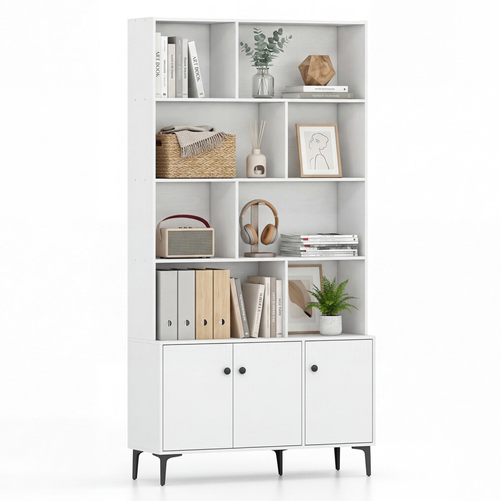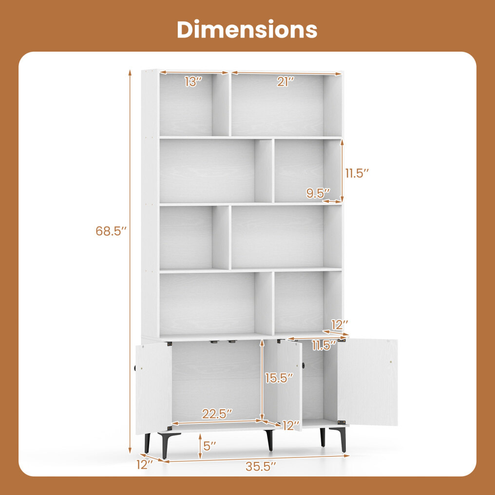 ● Smart Storage Options: Enjoy a clutter-free home with a bookshelf designed for real-life organizing, open shelving keeps your favorite reads, decorations, and daily essentials within easy reach. The enclosed cabinet/cabinets can neatly hide items you'd rather keep out of sight.