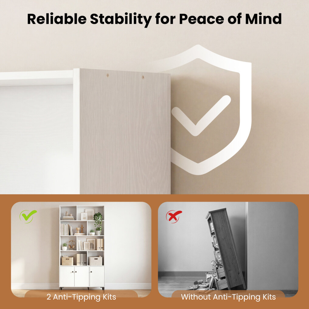 ● Double Anti-Tipping Protection: Feel more at ease with 2 anti-tipping kits that help secure the wood book shelf to the wall for added safety and peace of mind. This thoughtful feature reduces worry while you focus on living comfortably.