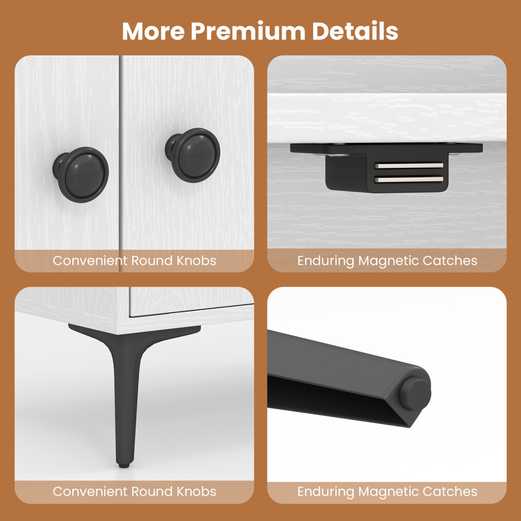 ● Premium Finishing Touches: Appreciate the details you'll notice every day, round knobs make opening and closing feel effortless, while magnetic catches help cabinet doors stay neatly shut for a tidy appearance. Protective foot pads add a considerate layer of care for your floors and help reduce scratches.