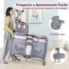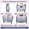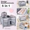 This baby nursery is a must-have for newborns! It combines a crib, changing table, playpen, and rocking cradle, meeting the needs of newborns up to 3 years old. Easily foldable without tools: 1. Hold the playpen upright. 2. Lift and lock the 4 sides. 3. Check that they are locked. 4. Press the bottom of the playpen. Includes a carry bag, perfect for travel or storage. It also features a music box and hanging toys for added entertainment, promoting baby's visual development and grasping ability.