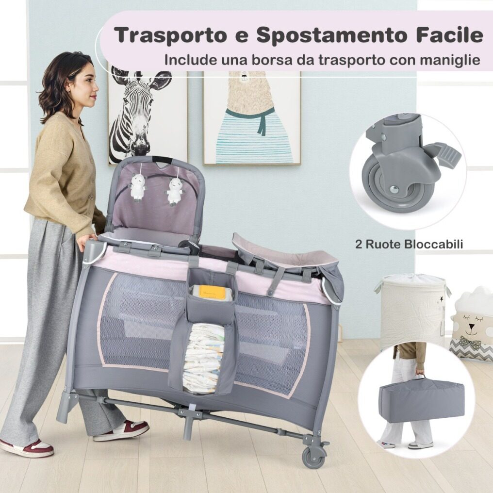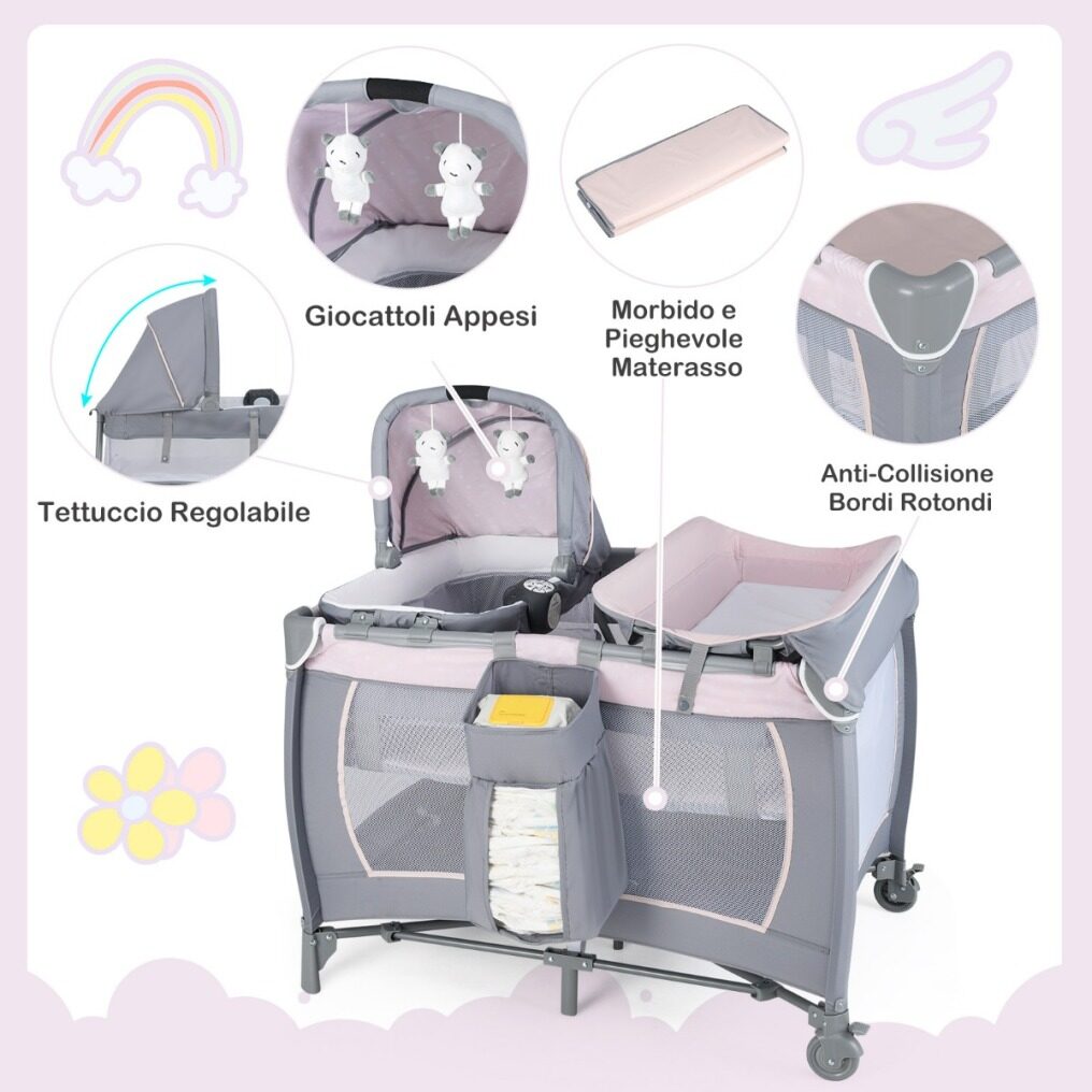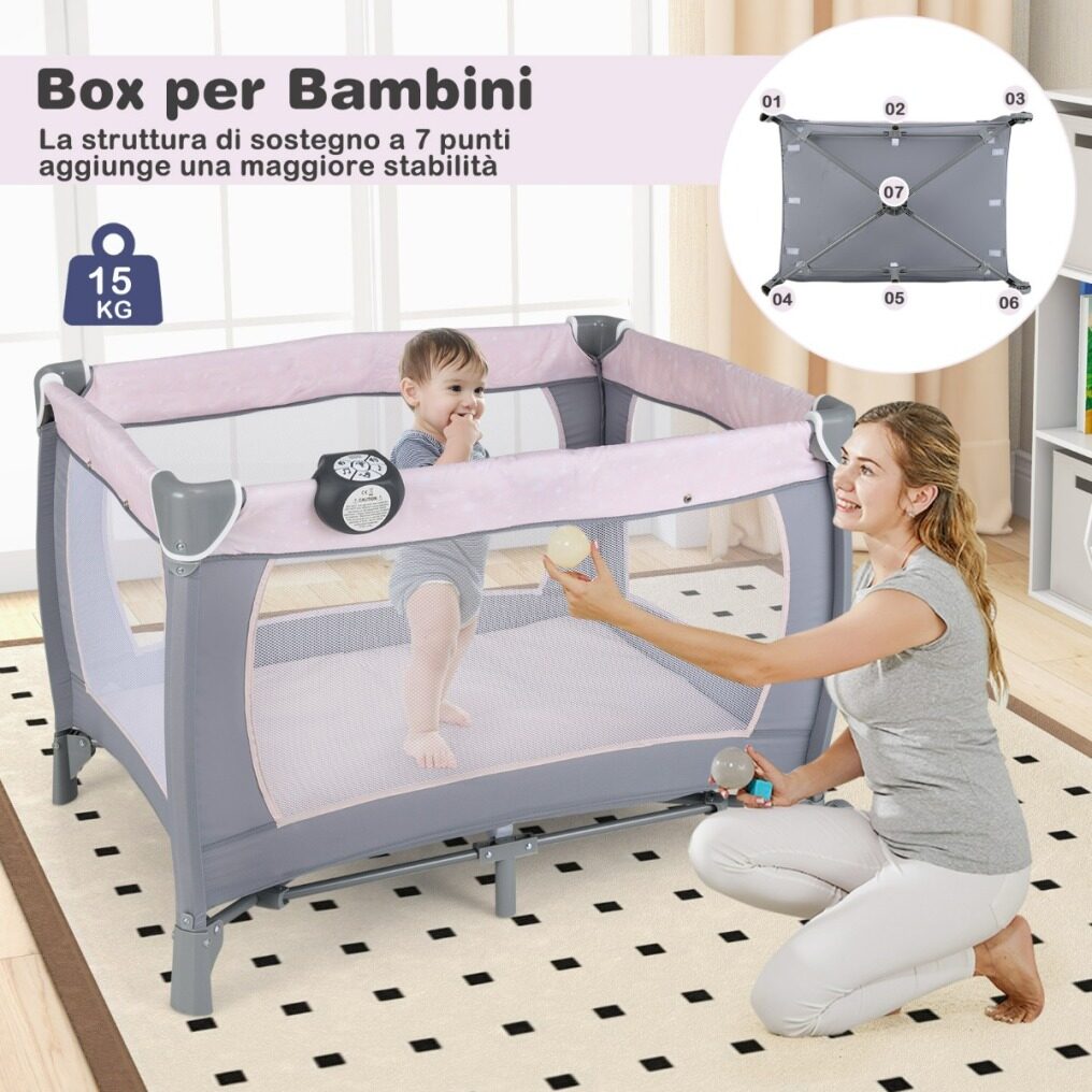Stable Structure and Ease of Movement: The sturdy metal frame with 7-point support structure ensures greater stability. The breathable mesh on four sides ensures air circulation and allows parents to easily observe their baby. Equipped with 2 lockable wheels for easy movement.