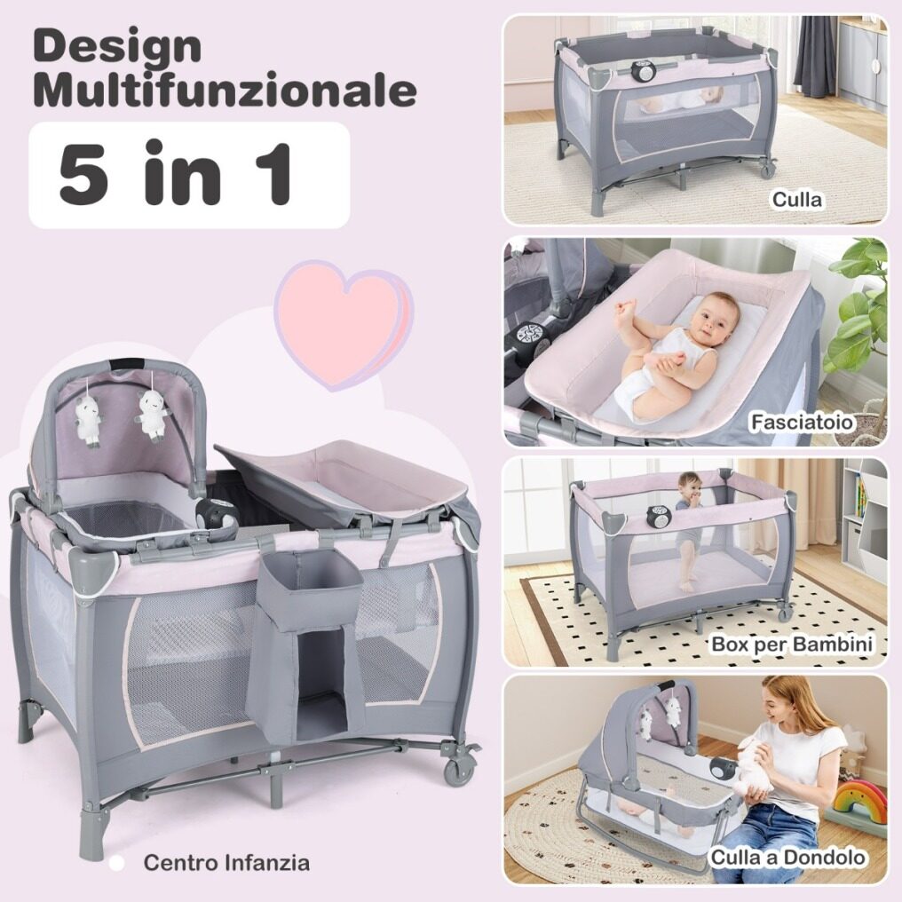 5-in-1 Multifunctional Design: This baby nursery includes a changing table, playpen, rocking crib, and bassinet, accommodating your baby's growth (0-3 years). The removable storage shelf is convenient for storing essentials like bottles, diapers, and other accessories.
