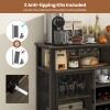 ● Enhanced Sturdiness: The large coffee bar cabinet is constructed with a heavy-duty metal frame for long-lasting durability. Together with 2 anti-tipping kits and 4 adjustable foot pads, the cabinet is not likely to wobble or tip over.