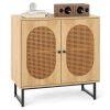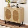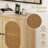 ● User-friendly Details: The rattan buffet cabinet features elegant metal handles for easy access and a refined touch. Its soft-close hinges ensure smooth, quiet operation, preventing doors from slamming shut.
