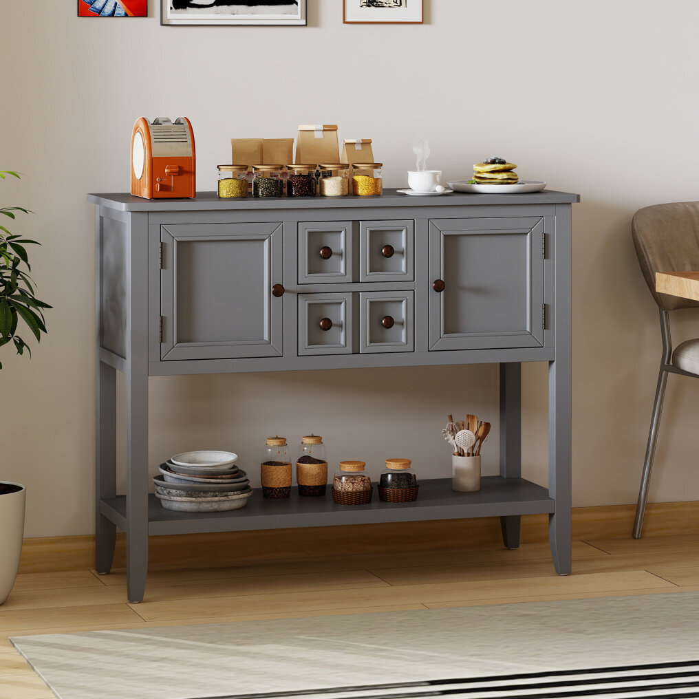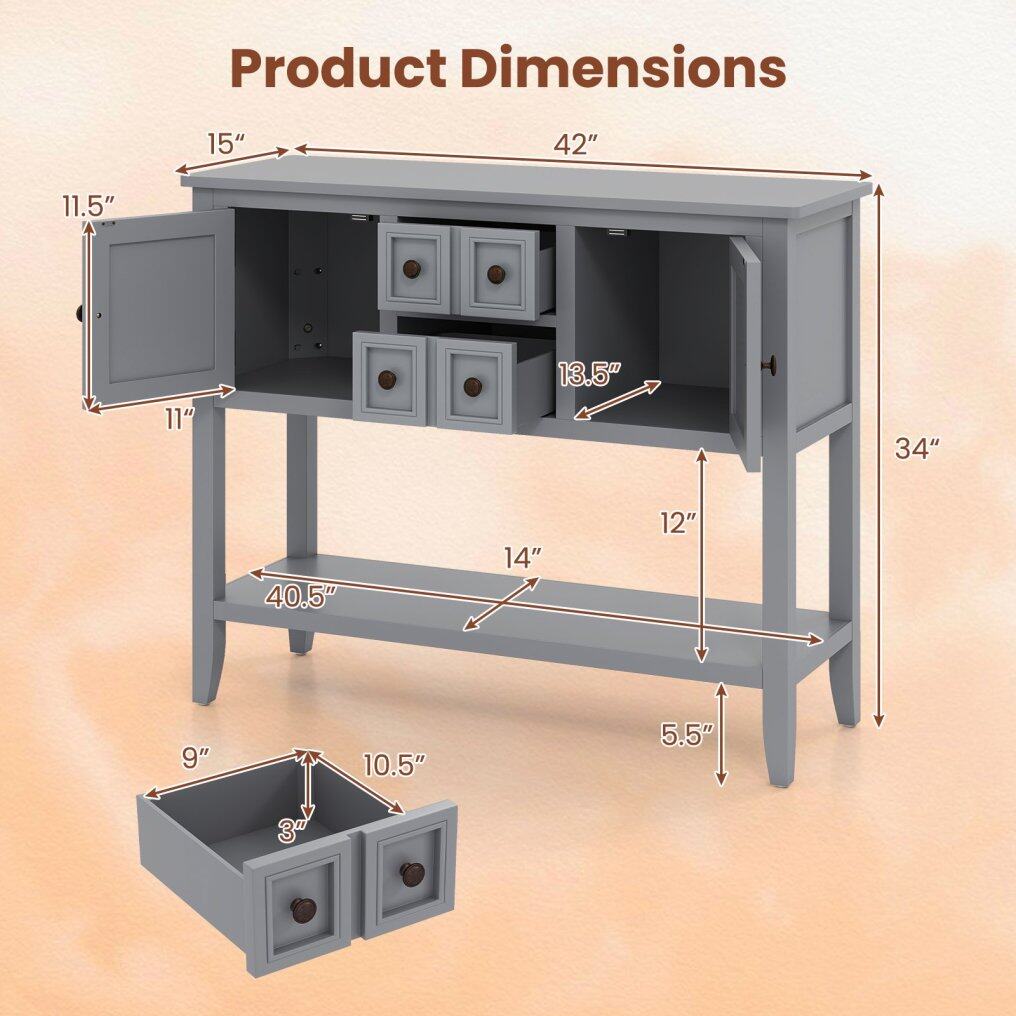 ● Spacious Storage: With a wide countertop, 2 enclosed cabinets, 2 smooth-operating drawers and a bottom shelf, this entryway table keeps various items from dinnerware to baskets effortlessly organized.