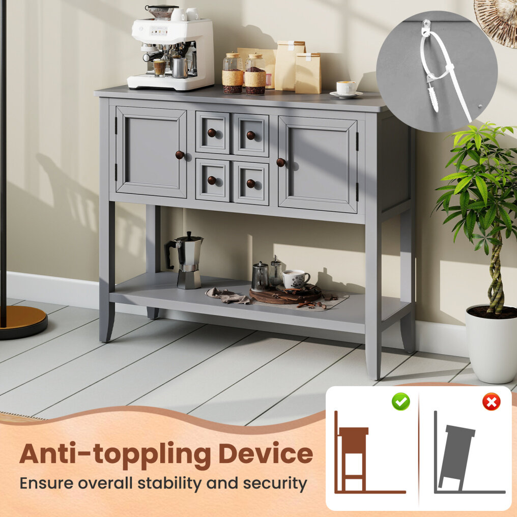 ● Built to Last: Crafted from solid pine wood and sturdy MDF panels, this sideboard buffet cabinet ensures longevity and robust support for your household items. Plus, the triangular reinforcements and anti-slip foot pads allow for extra stability.