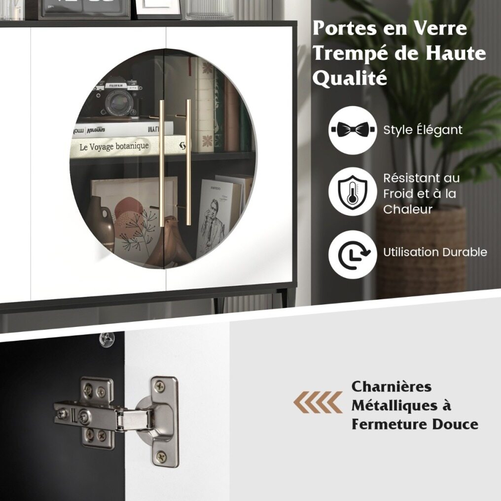 Robust and stable sideboard: Our dining room cabinet is built to withstand daily use thanks to the high-quality materials. High-quality tempered glass doors are cold and heat resistant and allow for long-lasting use. And the sideboard is equipped with anti-tip devices that can fix the cabinet to the wall to protect you and your family.