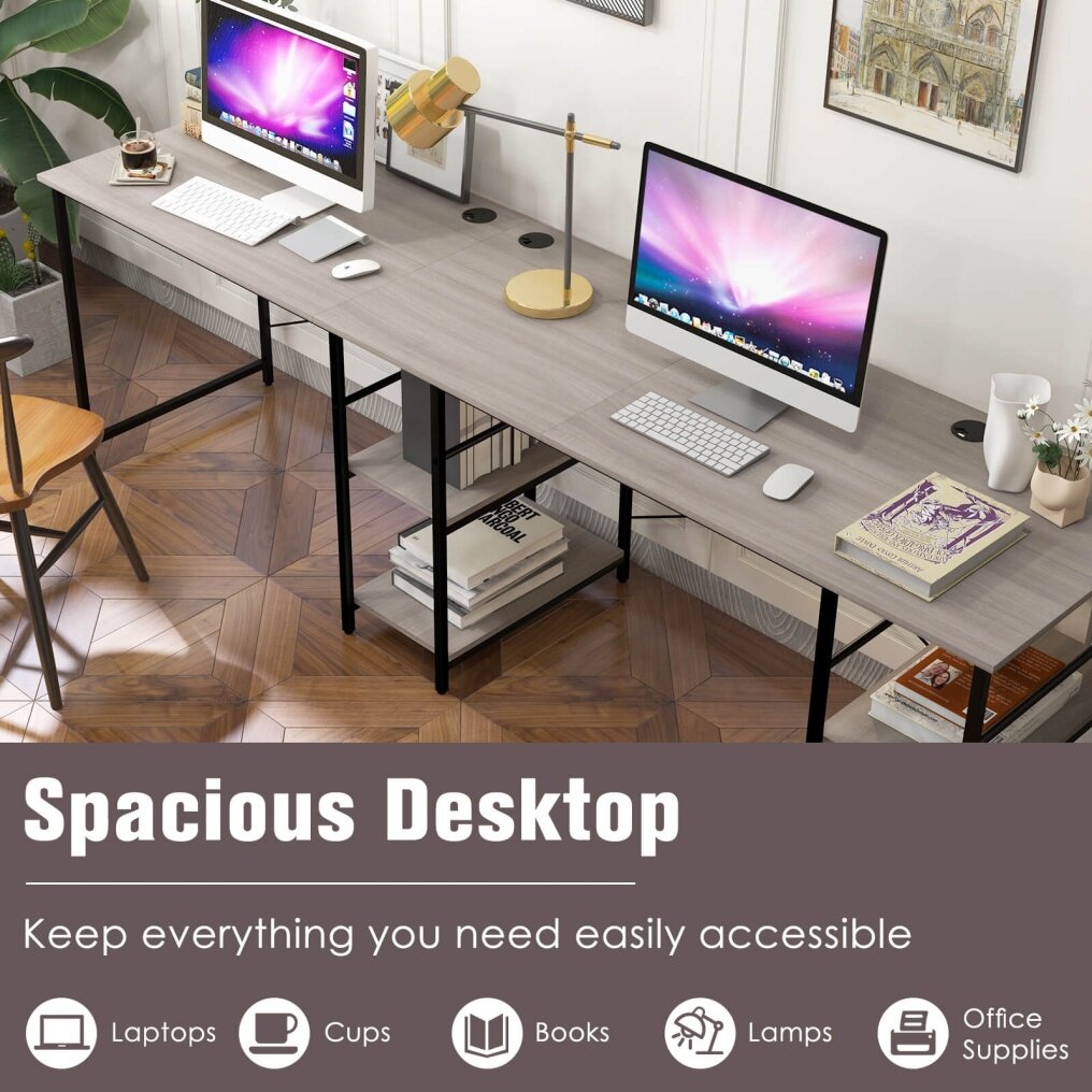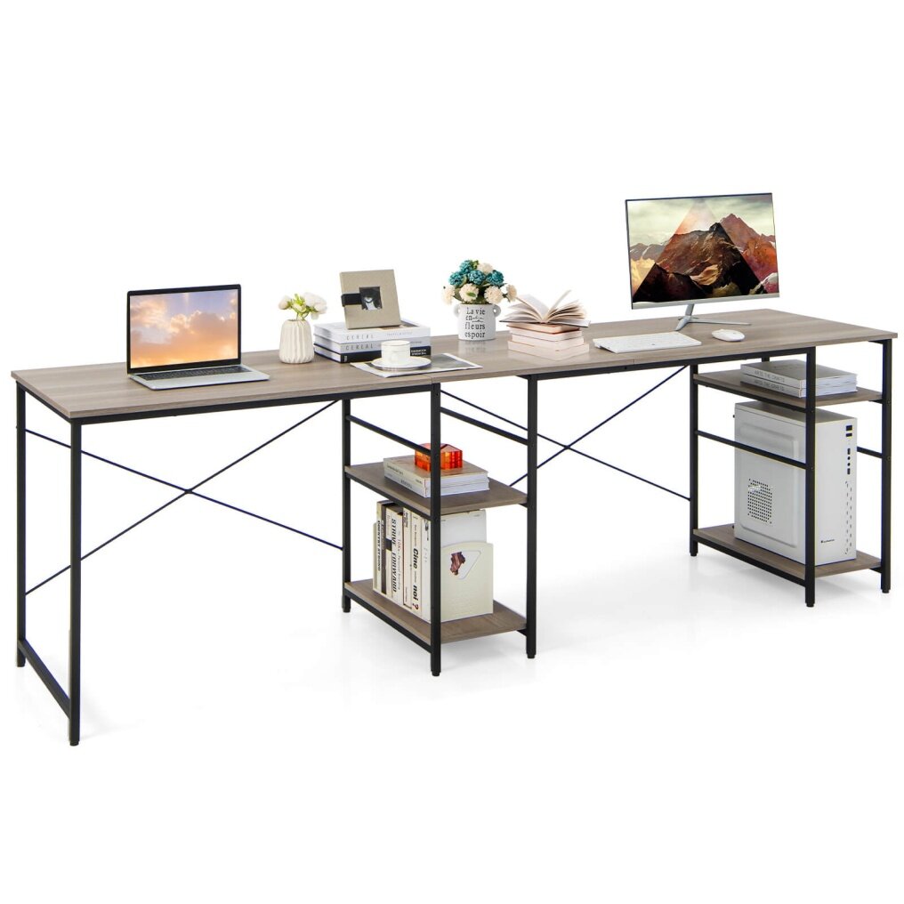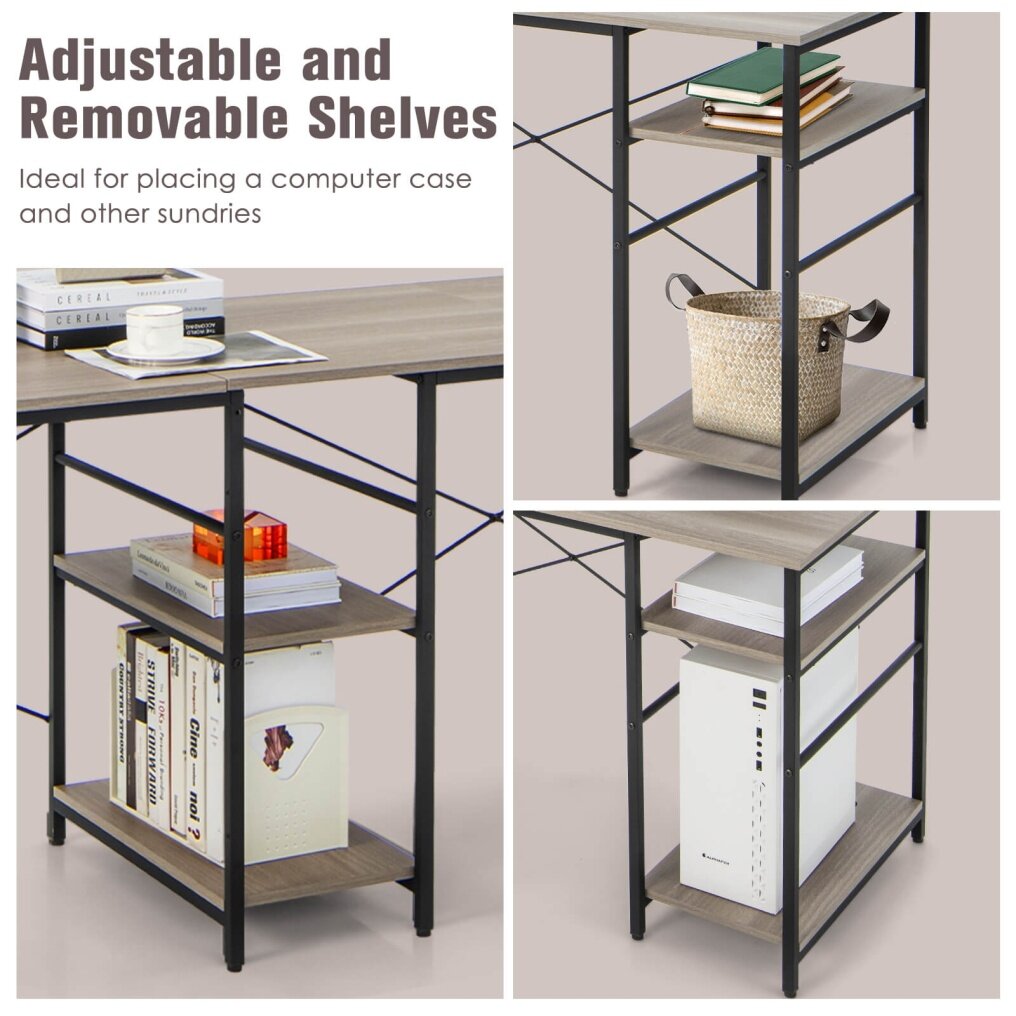 DIY the Shelves: Underneath the large tabletop, 4 extra storage shelves help you to organize the work supplies to free up the tabletop space. What's more, you can also turn the 2-tier storage shelves into CPU stands, just by removing the middle shelves during assembly.