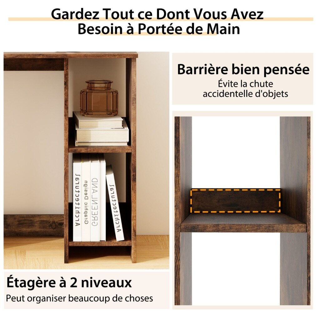 【 Extra Storage & Legroom 】 Meeting various needs, the laptop table contains space for storage and leg rest. In particular, the 2-tier shelf is spacious to hold more items and also has high barriers to prevent items from falling. If you feel tired, you can stretch your legs under the desk to find the best working conditions.