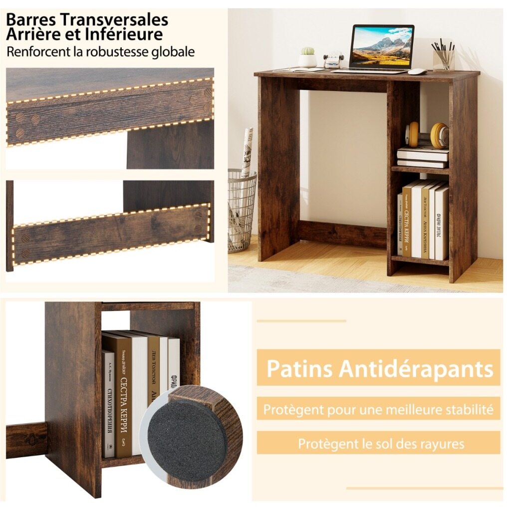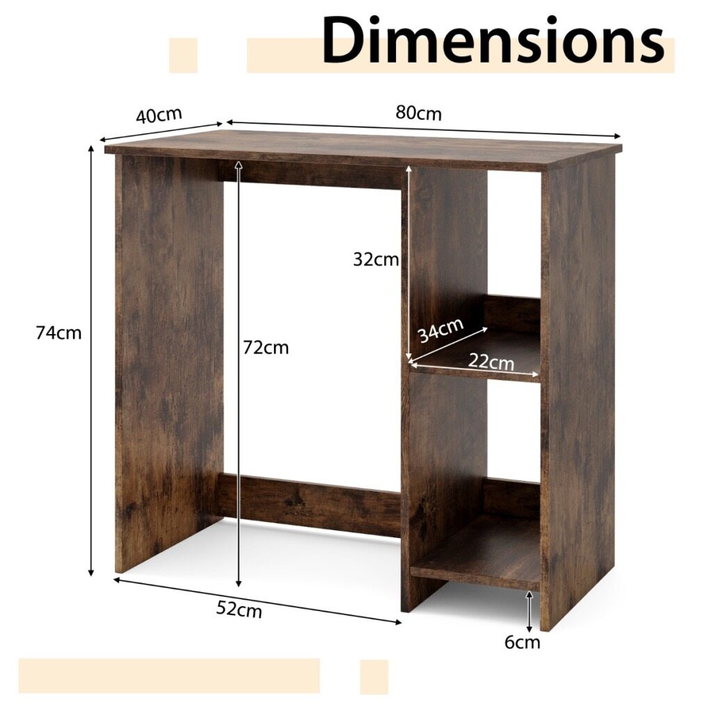 The 80cm desk is compact yet provides ample workspace to keep everything you need within easy reach. Or you can combine multiple desks to create a larger one. The 2-tier shelf provides additional storage and features a barrier to prevent items from falling. It is sturdy with its quality frame made of thickened boards and crossbars, and its overall load capacity is 130kg. Non-slip foot pads are provided for added stability. Installation is easy with the manual.