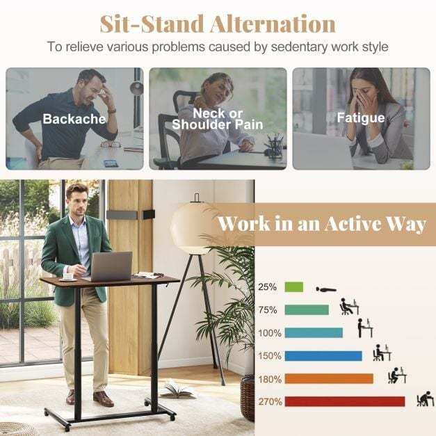 User-Friendly Desktop: The mobile standing desk’s desktop is thoughtfully designed with rounded corners and an anti-crash barrier, significantly reducing the risk of bumps and scrapes. This feature ensures a safe and comfortable user experience, making long hours at the desk as pleasant as possible.