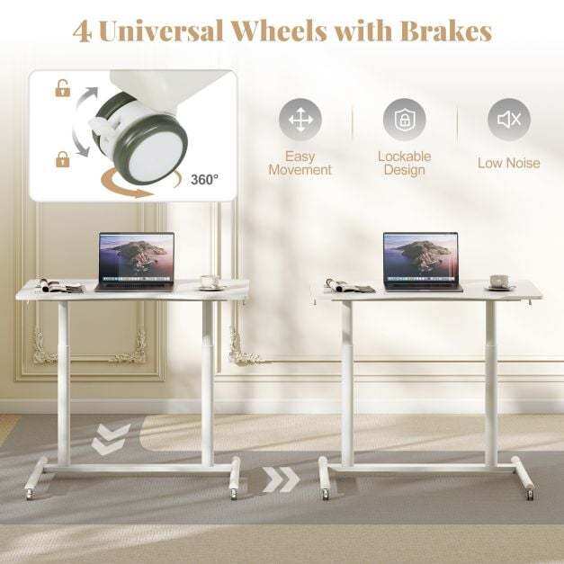 User-Friendly Desktop: The mobile standing desk’s desktop is thoughtfully designed with rounded corners and an anti-crash barrier, significantly reducing the risk of bumps and scrapes. This feature ensures a safe and comfortable user experience, making long hours at the desk as pleasant as possible.