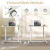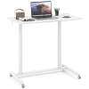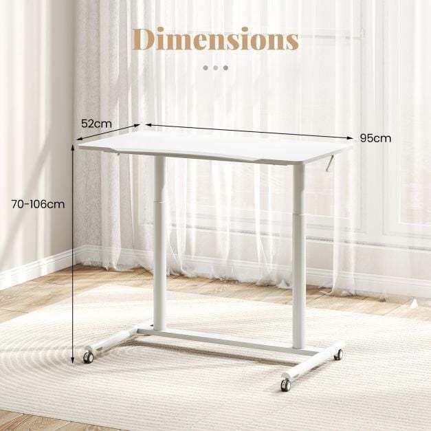 Enjoy the seamless sit-stand work style with the sit stand desk, crafted for easy transitions between sitting and standing with an adjustable height range of 70 to 106 cm. The reliable gas spring ensures smooth height adjustment. Its enduring, robust construction, including aluminum tubes and an H-shaped metal base, can securely hold up to 90 kg. Mobility is effortless with 4 universal wheels, which are lockable as well for secure stopping. The desktop is user-friendly with rounded corners and an anti-crash design, ensuring a spacious and ergonomic workspace. Ideal for any room in your home, the space-efficient C-shaped design maximizes your area, making it perfect for various settings.