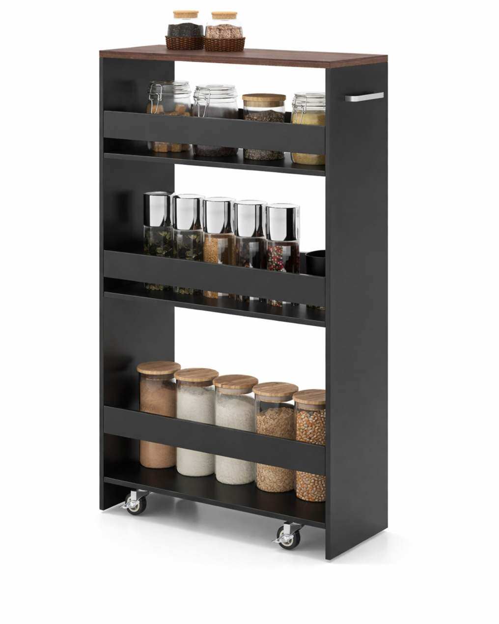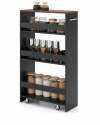 Smart 4-tier organization: This 4-tier narrow storage cart offers a convenient top shelf and 3 open shelves at different heights, easily accommodating everything from glasses to bottles. Safety rails prevent items from falling and ensure easy access to your organized belongings.