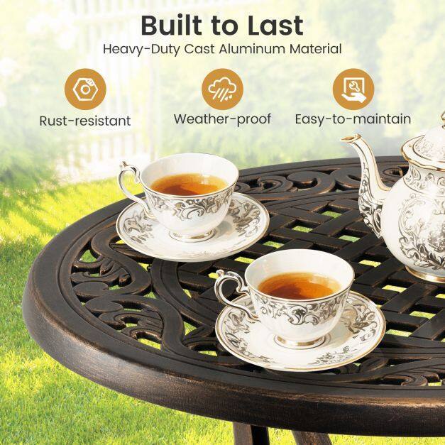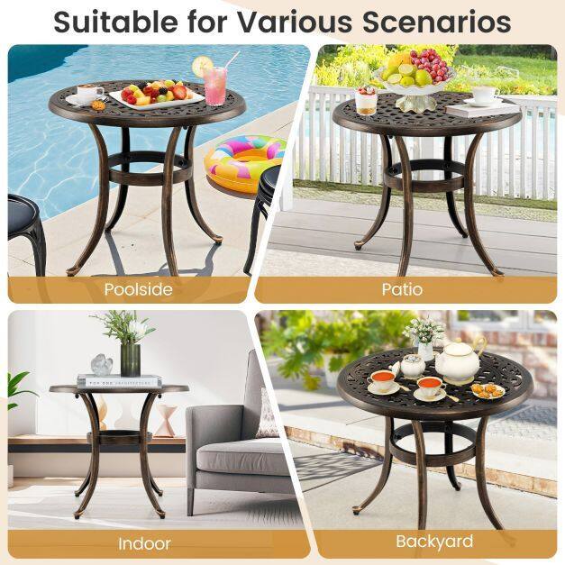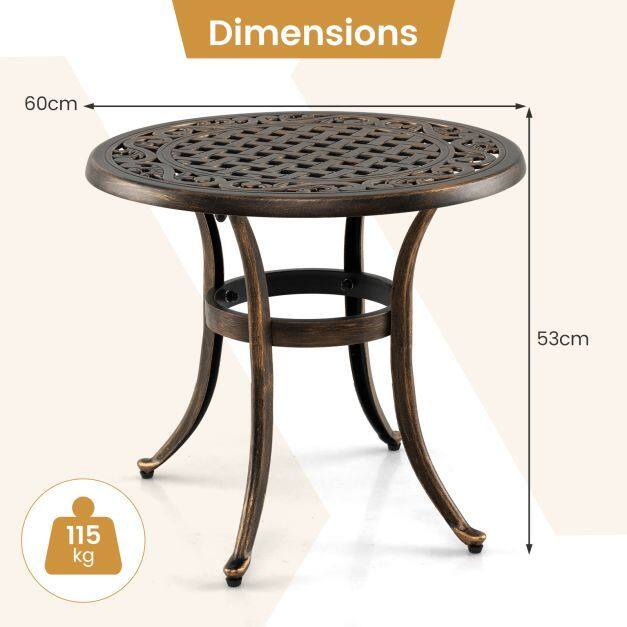 All Weather Cast Aluminum Material: Made from cast aluminum, this side table is weatherproof and anti-rust, making it perfect for outdoor settings. You can enjoy it year-round without worrying about wear and tear.