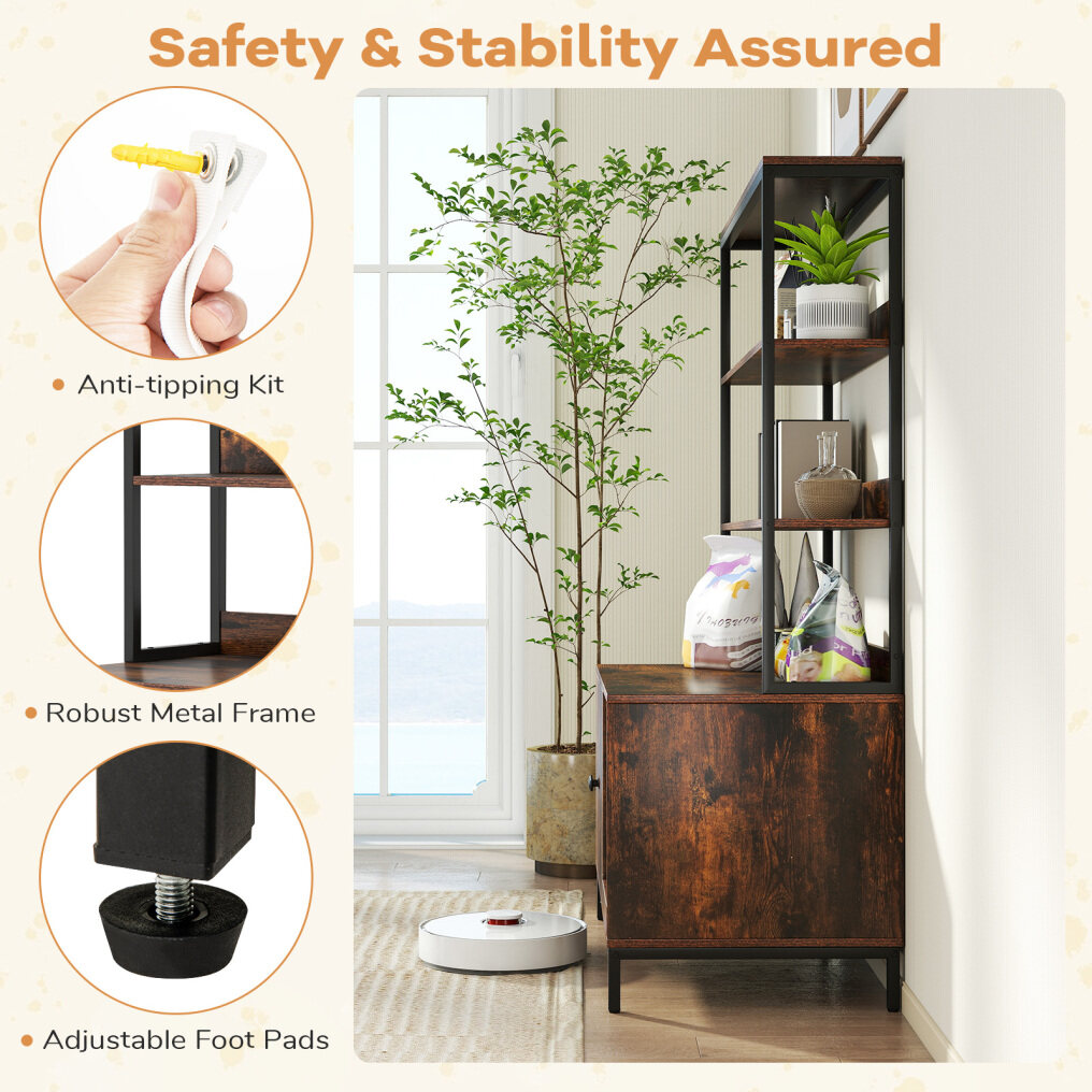 Abundant Storage Space: The hidden cat washroom furniture boasts 2-tier storage shelves, a spacious top, and a large cabinet, offering ample space to keep essentials neatly organized. From pet treats to storage baskets, books, and decorations, this versatile cat cabinet doubles as a functional display shelf.