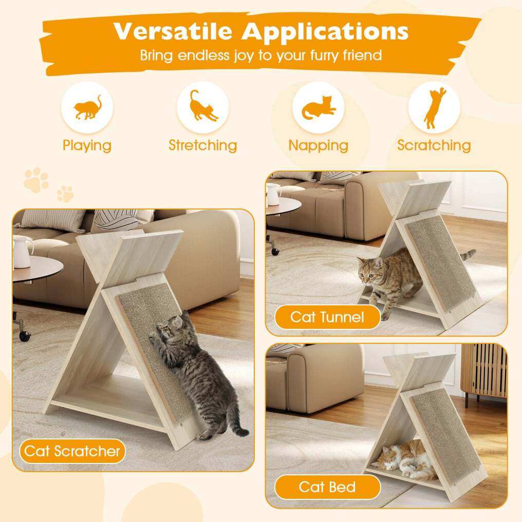 ● Multipurpose Design: The cat scratcher offers a multifunctional haven that combines a scratching surface, an engaging tunnel, and a snug wooden lounge. It's the perfect indoor cat furniture for play and rest, maximizing utility while minimizing the footprint in your living space.