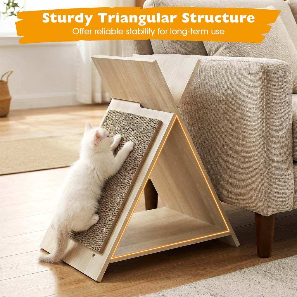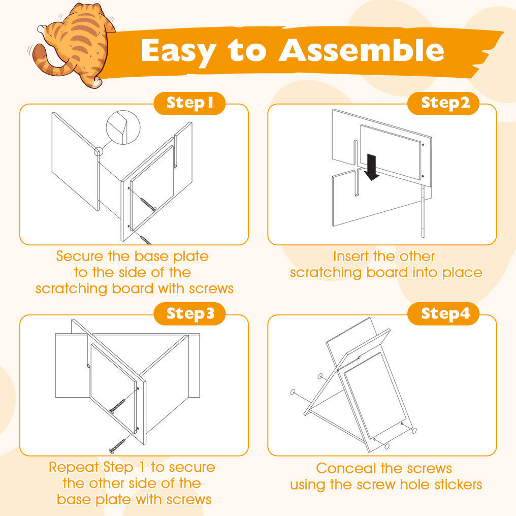 ● Simple & Seamless Assembly: Featuring slot-in system, the triangle scratcher can be effortlessly installed without complicated steps. Moreover, included adhesive screw stickers conceal all joints, resulting in a polished look for your cat's new favorite spot.