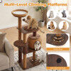 The cat tower includes natural sisal scratching posts and comfortable plush posts to satisfy your cat’s natural scratching behavior and allow your cat to enjoy a full stretch, helping protect furniture and promote healthy habits. Crafted with well-woven rattan, the cozy top perch and spacious cat condo provide elevated lounging and private resting spaces, enhanced by removable and washable cushions for daily cleanliness. To ensure endless fun for your furry friend, the design also features an Interactive plush hanging ball and a playful ball track that encourage active play. With multi-level climbing platforms, a stable base, and anti-slip foot pads, this indoor cat tree offers a secure and stylish solution for cats to explore, relax and play with confidence.