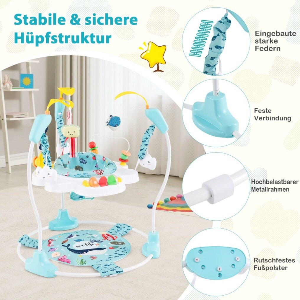 Stable and Safe Bouncing Structure: The built-in springs of the baby play center provide a gentle and stable bounce, and the durable metal frame with solid connections and non-slip feet ensure your baby's safety when bouncing or playing. Weight Capacity: 12kg.