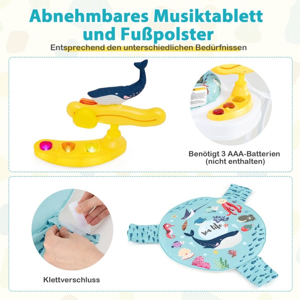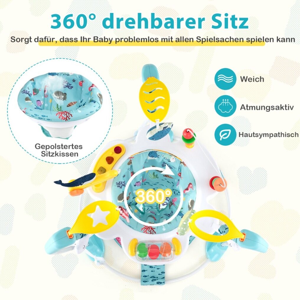 With 3 adjustable heights, this spinner grows with your child, ensuring optimal comfort and a perfect fit as they grow. The 360° rotatable seat improves mobility and encourages your child to explore their surroundings. The interactive toys included with this spinner are designed to engage and entertain your child. The music box plays cheerful melodies, creating a relaxing and enjoyable atmosphere. Additionally, the hanging toys encourage hand-eye coordination and motor skill development. Made with safety in mind, this spinner features a sturdy frame and a safety harness, ensuring your child is supported and protected at all times. The soft and comfortable seat provides a cozy place for your child to relax and play.