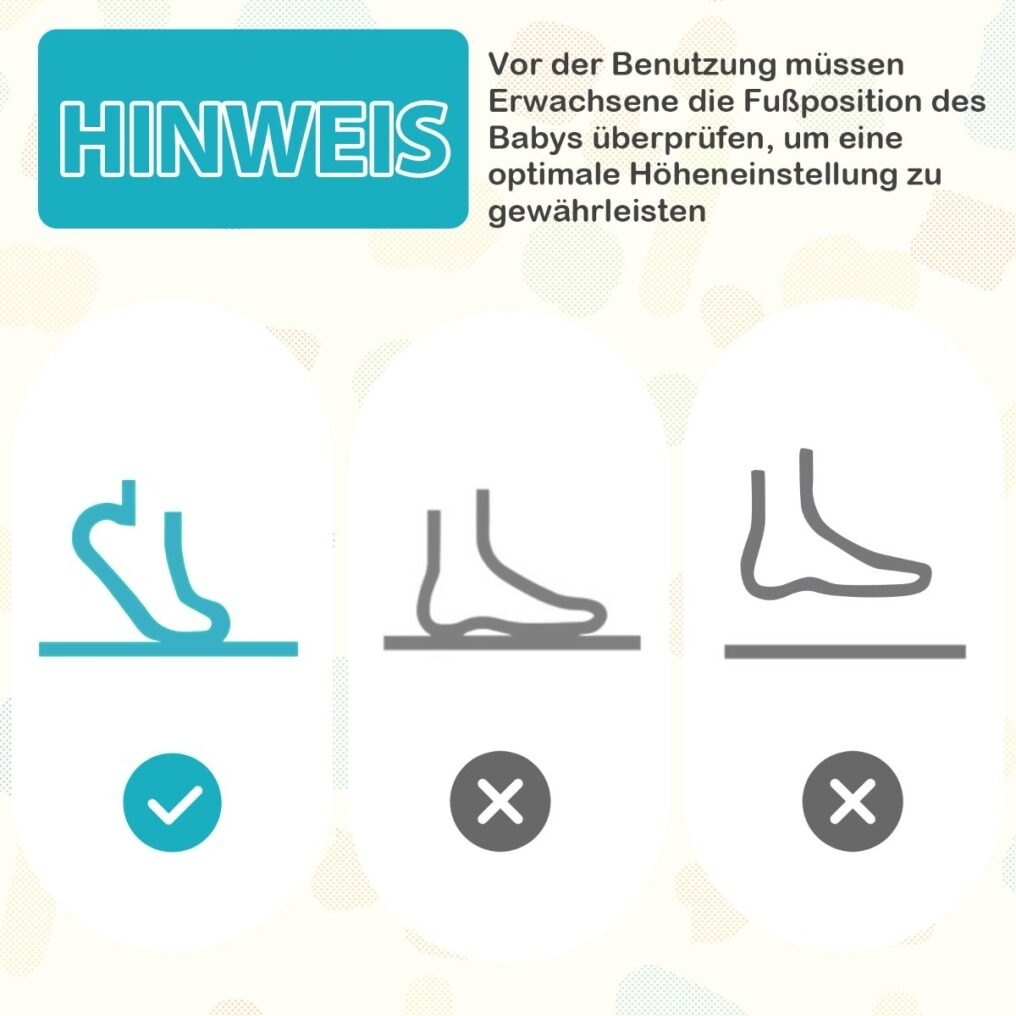 Note: Before use, adults should check the position of the child's feet to ensure proper height adjustment.