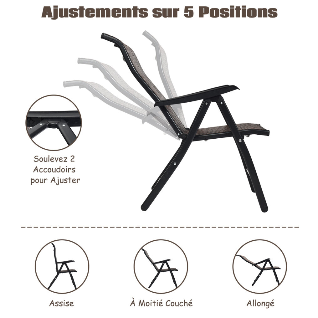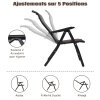 5-Level Adjustable Reclining: This outdoor chair has 5 adjustable backrest positions, allowing you to choose ideal positions from sitting up to reclining. Lifting the armrest and securing it to the position which is most comfortable for your back, you can totally slow down and enjoy your leisure time.
