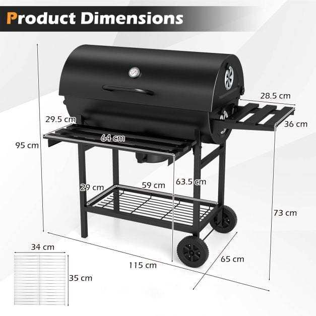 ● Easy to Control & Adjust: Featuring a built-in thermometer, this barrel barbecue grill allows you to monitor the temperature, thus your food is cooked perfectly every time. Moreover, the multiple air vents offer excellent airflow, making it a breeze to ensure complete and safe combustion.