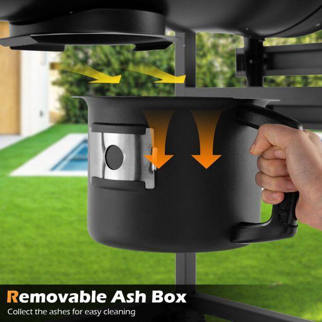 ● Versatile Cooking Ways: The BBQ smoker combo boasts grill or smoke as different cooking options, enabling you to choose the one according to your preference. With convenient rack handles, you can add charcoal easily, while the removable ash box helps collect the ashes for easy cleaning.
