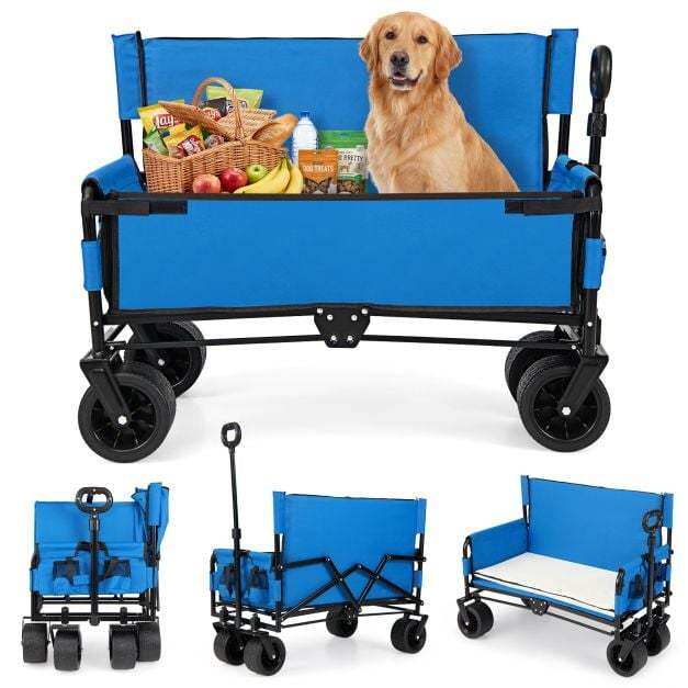 【Easy Setup & Practical Details】Ready to use with no assembly required, the folding cart with bench includes side pockets for easy storage of your essentials. Hook-and-loop fasteners ensure a secure attachment, while the reinforced base provides added stability.