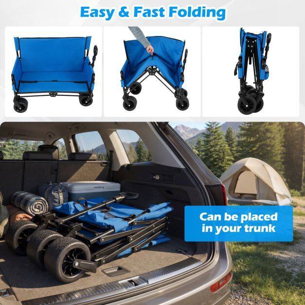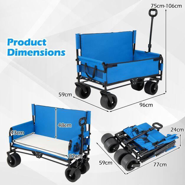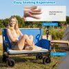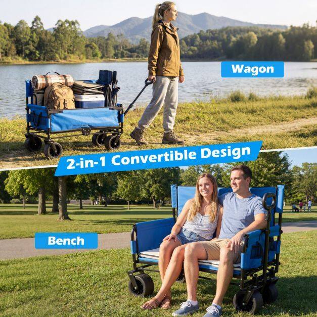 【Convertible Comfort & Portability】The folding beach cart transforms into a bench, offering comfort with high-resilience foam seat and back cushions. With its foldable and portable design, it's perfect for beach outings, camping, picnics, and other outdoor events.