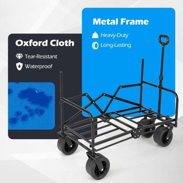 【Stable and Reliable Construction】Made of tear-resistant and waterproof Oxford fabric, this 2-in-1 folding beach cart is designed to withstand harsh conditions. Its sturdy metal frame provides strength and stability for frequent and demanding use.