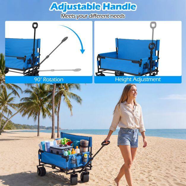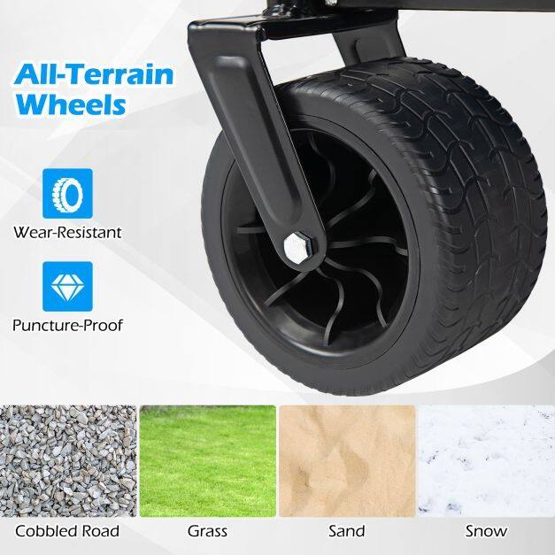 【Adjustable and Rotating Handle】Featuring 90° rotation and height adjustment, the handle of this outdoor utility cart offers optimal control and enhanced comfort. Whether maneuvering in tight spaces or pulling over long distances, the customizable handle ensures a perfect fit for an improved experience.