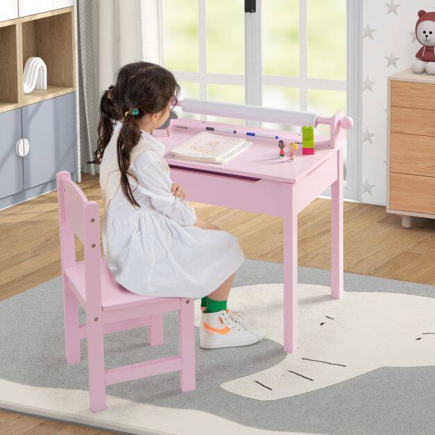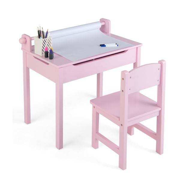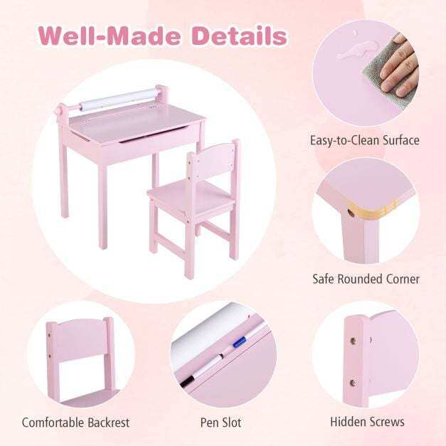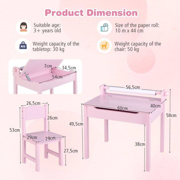 Kid- friendly design : The paper roll holder is easily detachable to replace the paper roll. With a pen slot on the table, you can place frequently used writing tools. The high back chair provides comfortable and firm support for the child's body.