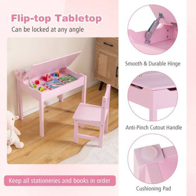 Designed for safety : the foldable tabletop can be locked at any angle, and the cushioning pads reduce noise when closed. The cut-out handles and rounded corners protect children from getting trapped and injured.