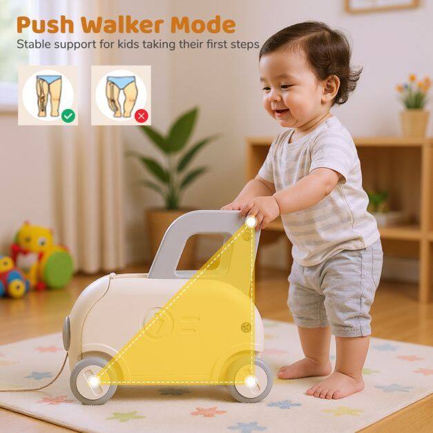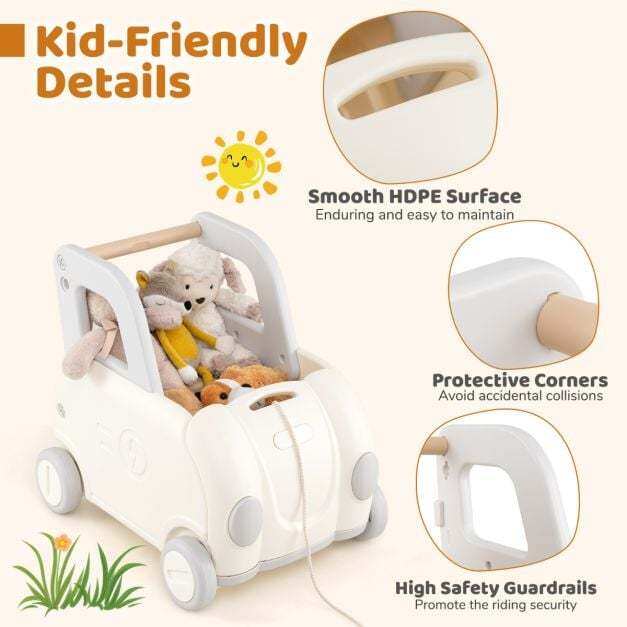 Multifunctional Design: The toy cart seamlessly transitions between walking, riding, and pulling, and also offers convenient storage. When adding books or toys, the increased weight improves the friction of the wheels, ensuring a more stable walking experience.