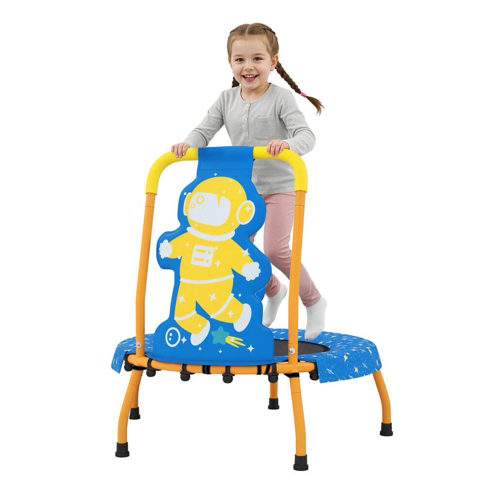 Wonderful Gift for Kids: With adorable giraffe/astronaut theme, the mini trampoline instantly captures the heart of any child, while its compact style complements playrooms and homes. Hence, it is an unforgettable gift choice for kids ages 3-6 with benefits for unleashing energy and improving balance.