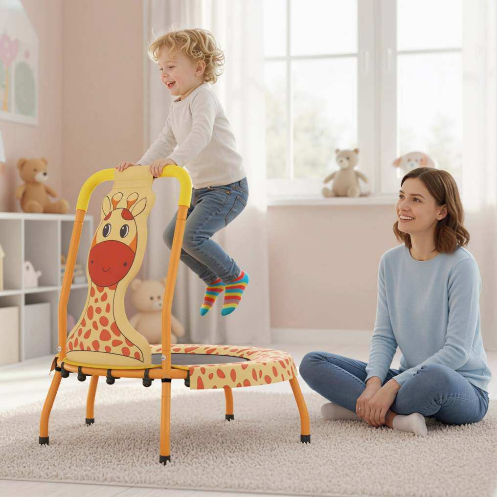 Robust & Stable Construction: Featuring a strong metal frame and non-slip feet, the small trampoline for kids indoor stays firmly in place during every leap and landing, supporting countless hours of active fun. The weight capacity is 50 kg.
