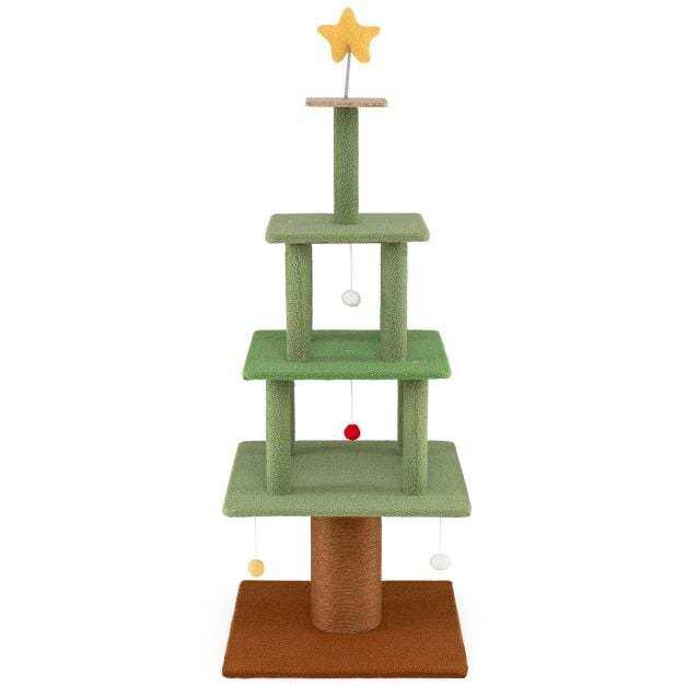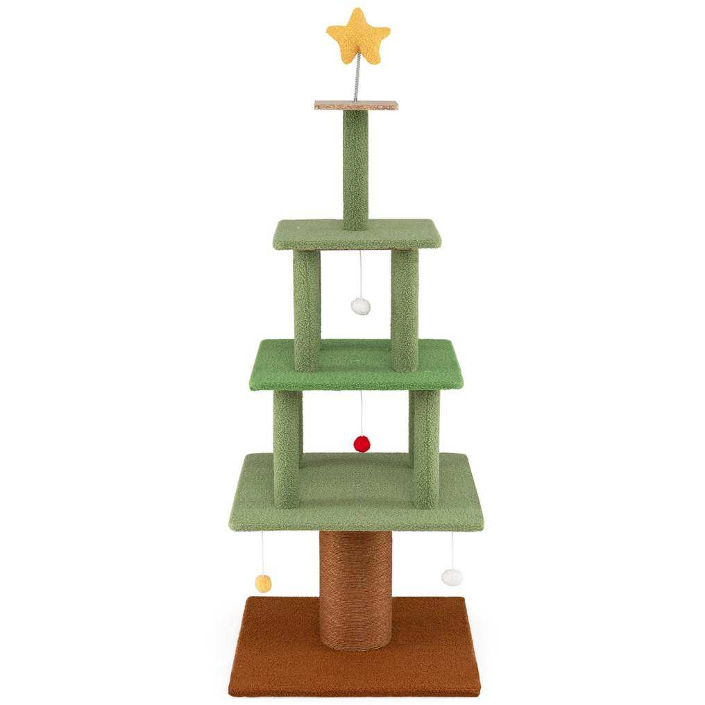 Endless Play Opportunities: Adorned with a festive star at the top, the multi-tier cat play structure encourages adventurous climbing and jumping. In addition, playful features such as 6 hanging ball toys keep kitties entertained, active, and mentally stimulated.