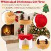 Festive and Unique Design: This whimsical Christmas cat tree features a vibrant combination of red, orange, yellow, and white, accented with playful antlers and a decorative gift box. It is not only a fun activity center for your pet but also a delightful addition to your holiday decoration.