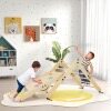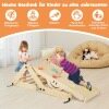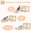 Our 5-in-1 climbing frame kit contains a convertible ladder and a double-sided ramp for kids to climb, crawl or slide. The ladder is easy to transform into different shapes and you can adjust the height of the ramp to slide or climb and flip it over like a seesaw for them to swing on. Solid wood bars and colorful rocks will help them climb. Made of safe pine wood for reliable use, it can be folded for space-saving storage, ideal for children's bedrooms, playrooms, preschools or daycares.