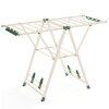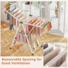 Height Adjustable Wings: With height adjustable wings ranging from 99cm to 148cm, this foldable clothes drying rack caters to various garment sizes, from shirts to long dresses. In addition, the reasonable spacing between rails promotes quick air drying.