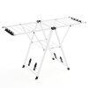 This clothes drying rack boasts multiple drying space, including drying rails, sock clips, and shoe racks, which can manage multiple loads of laundry at once. Moreover, the laundry hanger has height-adjustable wings to dry both small garments and large linens. The thoughtful spacing between the rails also promotes adequate air flow. Built with a strong metal structure and reinforced with A-shaped frame, the clothes drying rack combines stability with durability. Maximize your space with this foldable drying rack that tucks away easily when not in use.