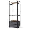 Industrial Rustic Charm: Combining rustic brown shelves with a black metal frame, this freestanding closet organizer adds an industrial aesthetic that blends seamlessly with various home decorations.