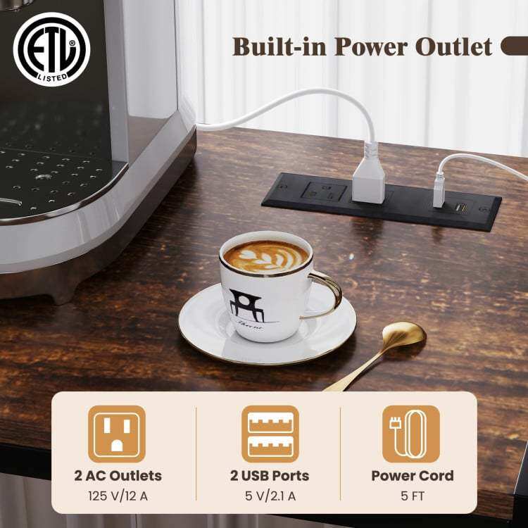 ● Built-in Power Source: Featuring an ETL certified power outlet, the kitchen bakers rack includes 2 AC outlets (125V/12A) and 2 USB ports (5V/2.1A), making it easy to charge devices and use electric appliances. A 5 ft power cord adds to the charging convenience.