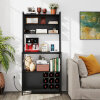 ● Ample Storage Space: The microwave stand offers multiple open shelves and a cabinet with door, providing ample room for cookware, tableware, and other items. Moreover, the hanging hooks and wine bottle holders offer specific storage solution for a comprehensive organization.