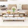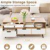 Ample Storage Space: This coffee table is designed to keep your essentials organized and easily accessible, featuring a spacious tabletop, 2 open compartments, and 3 drawers. It's ideal for storing books, snacks, vases and other items.