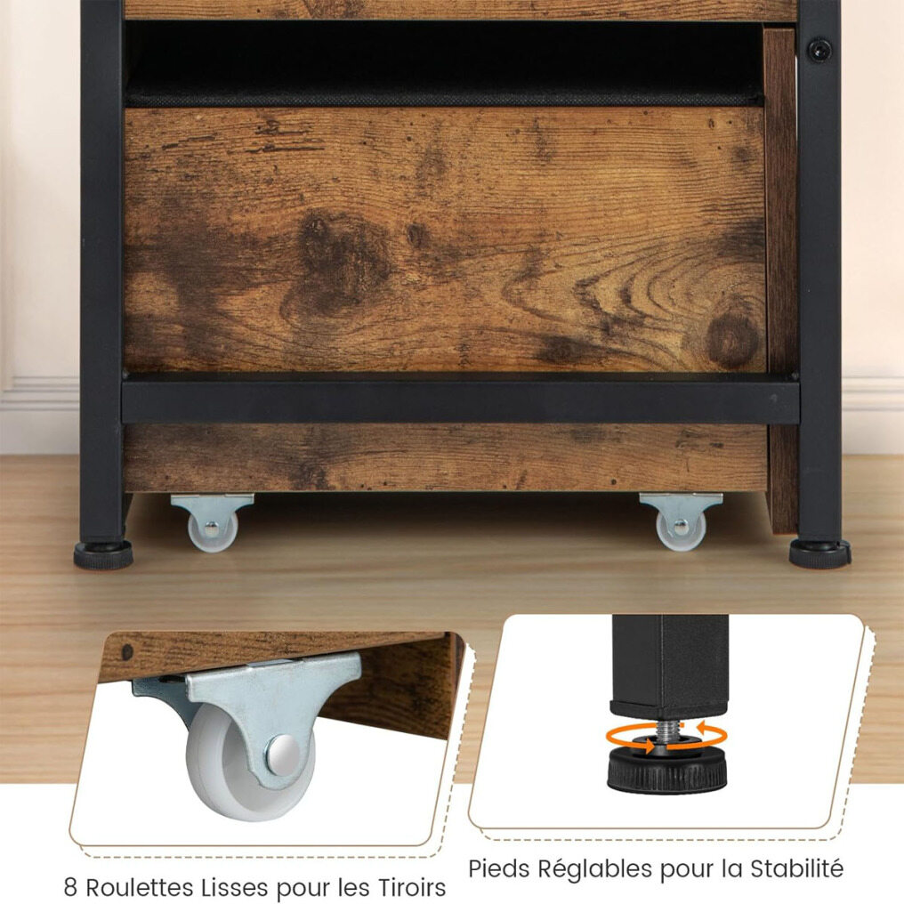 【ROLLABLE DRAWERS】The bottom drawers are equipped with flexible wheels and rounded handles, allowing you to easily pull them out and put them in. In addition, both drawers can be completely removed from the shoe cabinet, leaving enough space underneath for convenient shoe storage.
